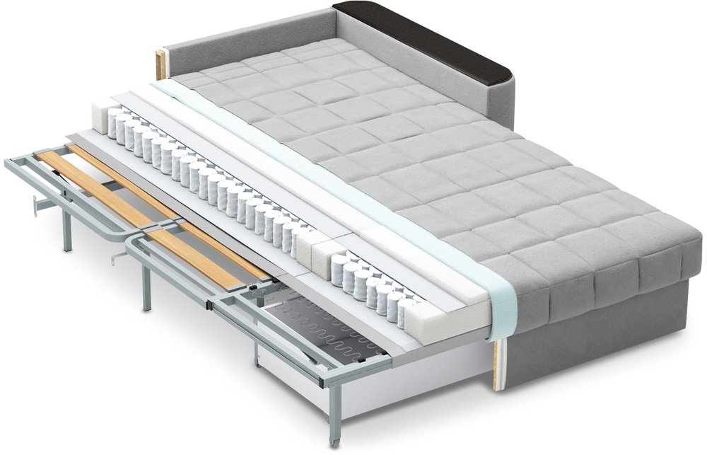 • При минимальных габаритах диван обладает отличным спальным местом.