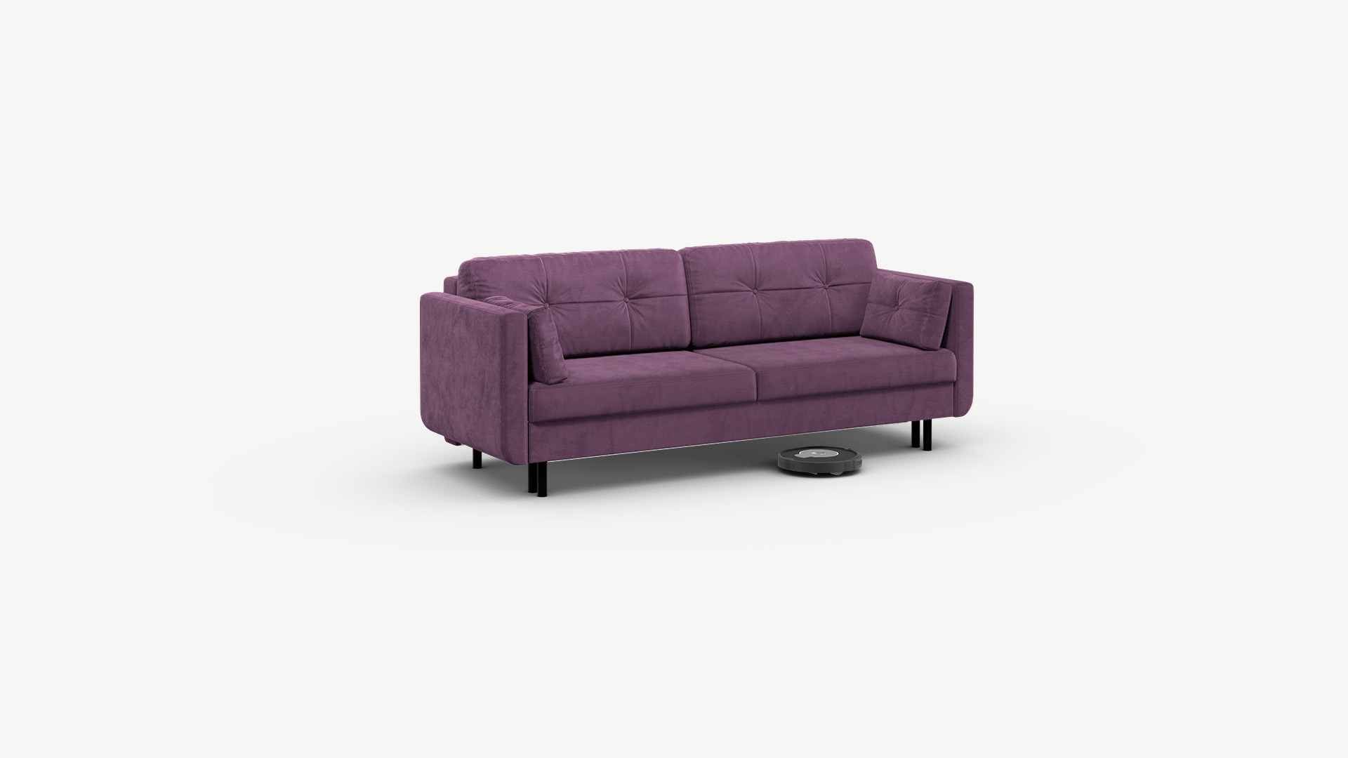 Благодаря высоким конусовидным опорам под диваном проходит робот-пылесос и легко проводится влажная уборка, что обеспечивает чистоту и порядок в доме. Цвет опор подбирается дизайнерами с учетом фактуры и цвета обивочного материала, а также последних модных тенденций.