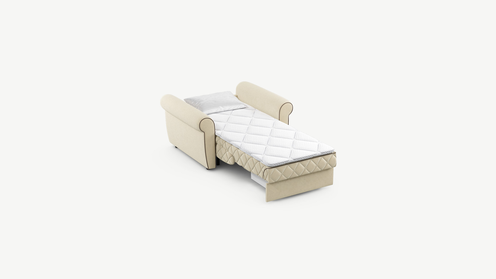 Дизайн MOON FAMILY 123 с винтажной формой подлокотников настраивает на звучание классики. Стежка в ромб добавляет образу кресла-кровати динамики, делая его более уютным и современным.