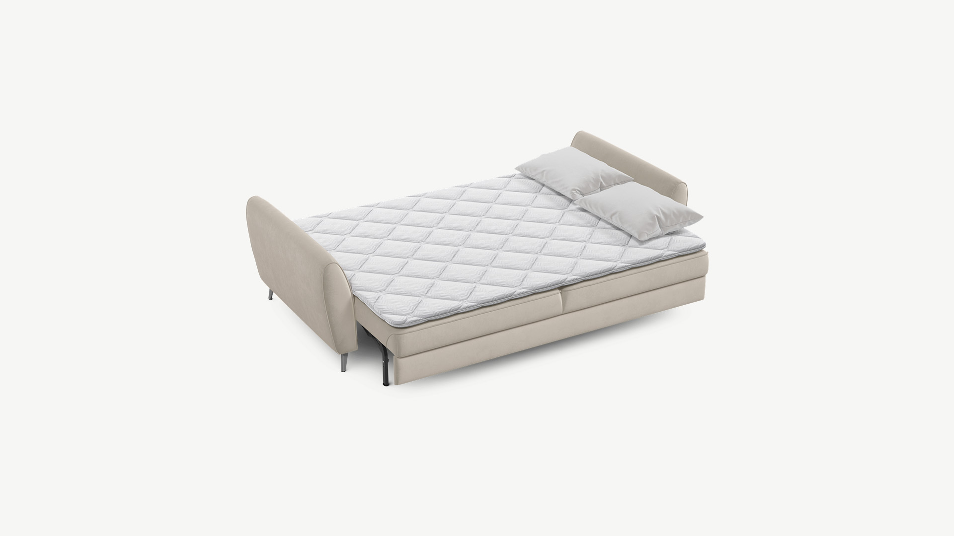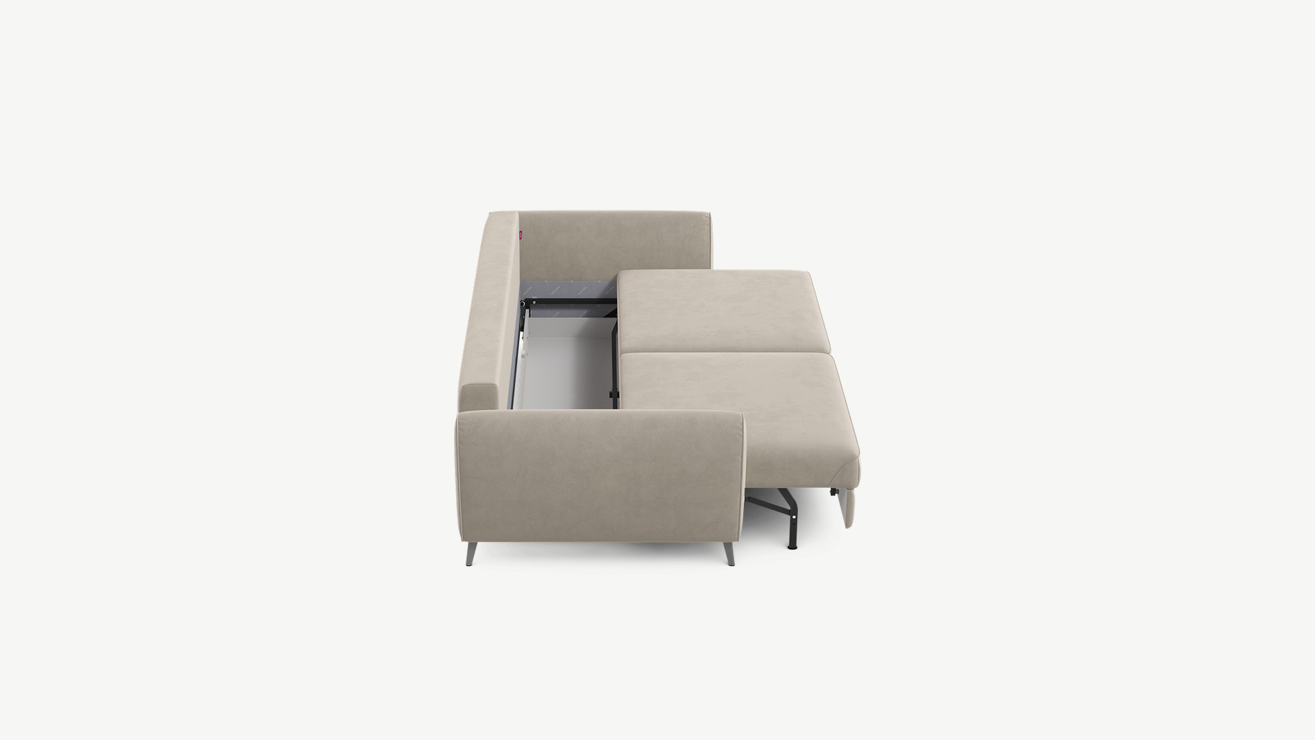 Механизм трансформации «Пантограф» подходит для ежедневного использования. Позволяет легко раскладывать и складывать диван, обеспечивая минимальный контакт дополнительных опор с напольным покрытием. Диван стоит на наклонных опорах, в то время как дополнительные остаются скрытыми, появляясь плавно и бесшумно в единственно нужный момент — при трансформации дивана в кровать.