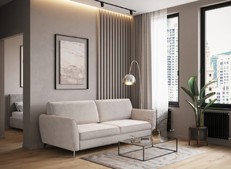 Благодаря высоким наклонным опорам под диваном проходит робот-пылесос и легко проводится влажная уборка, что обеспечивает чистоту и порядок в доме.