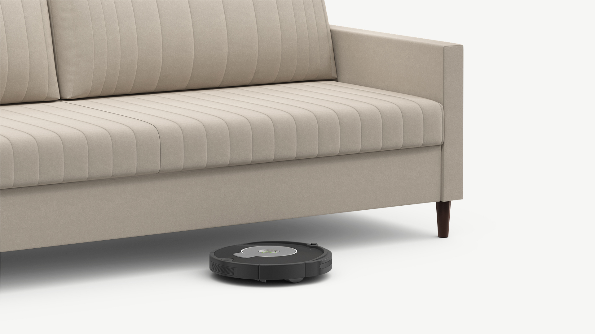 Благодаря высоким конусовидным опорам под диваном проходит робот-пылесос и легко проводится влажная уборка, что обеспечивает чистоту и порядок в доме.