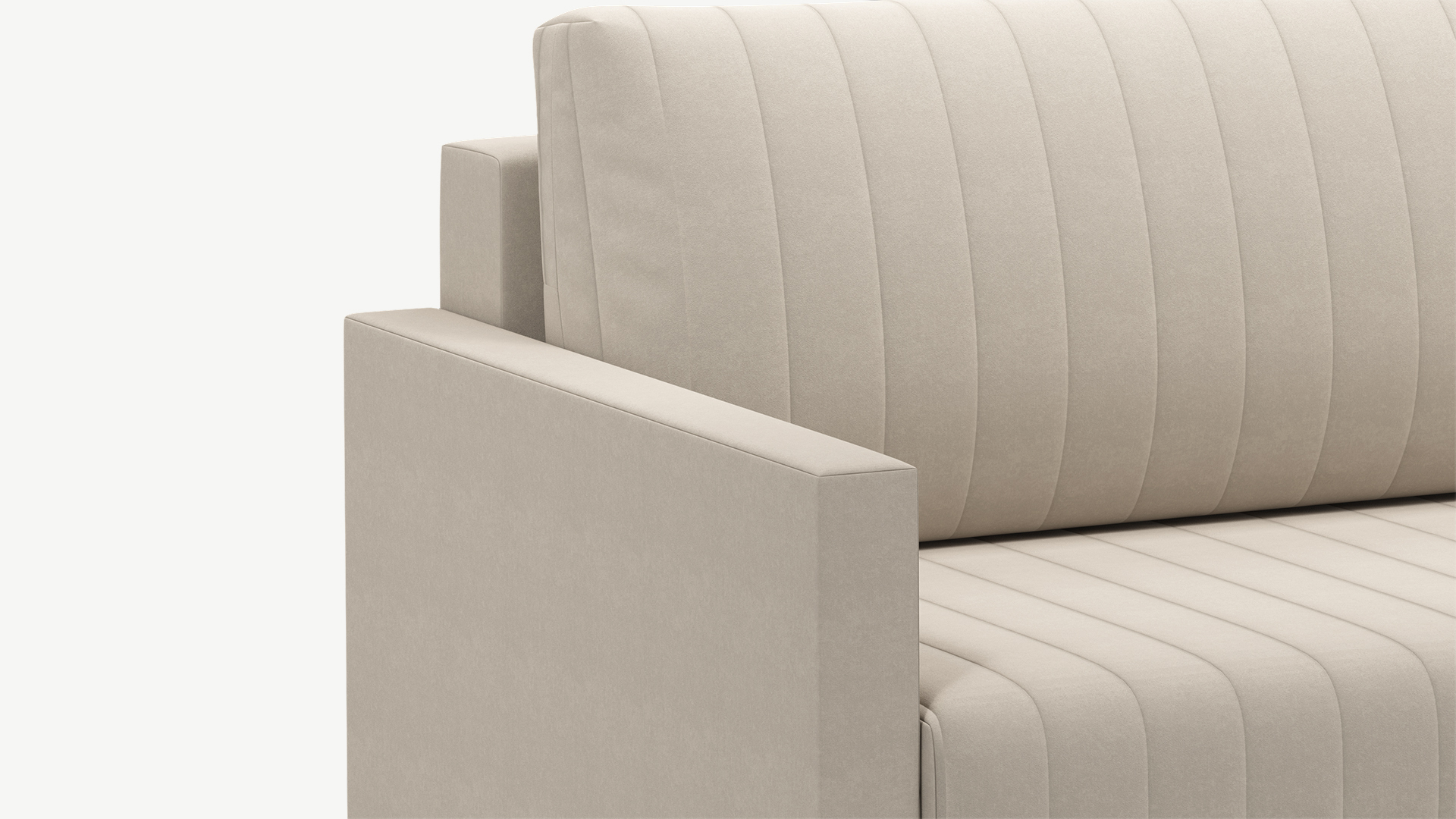 Спинка, выполненная в обивочной ткани, позволяет ставить диван в центре комнаты и зонировать пространство. По замыслу дизайнеров-конструкторов нижняя линия спинки дивана и подлокотники находятся на одном уровне. Уборка становится легкой, так как нет никаких препятствий для прохождения робота-пылесоса.