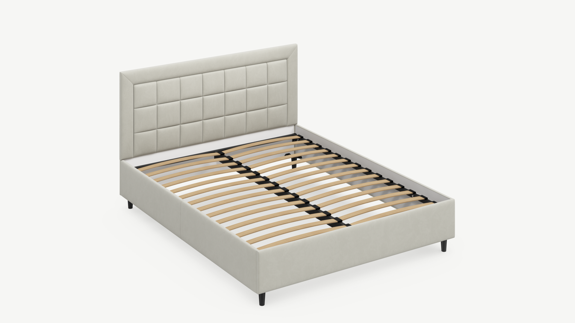 Рама, изголовье и царги надежно крепятся между собой, обеспечивая прочность и устойчивость кровати.