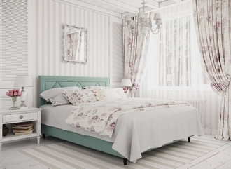 Фактура обивочного материала подбирается дизайнерами с учетом технологических и стилевых особенностей кровати.