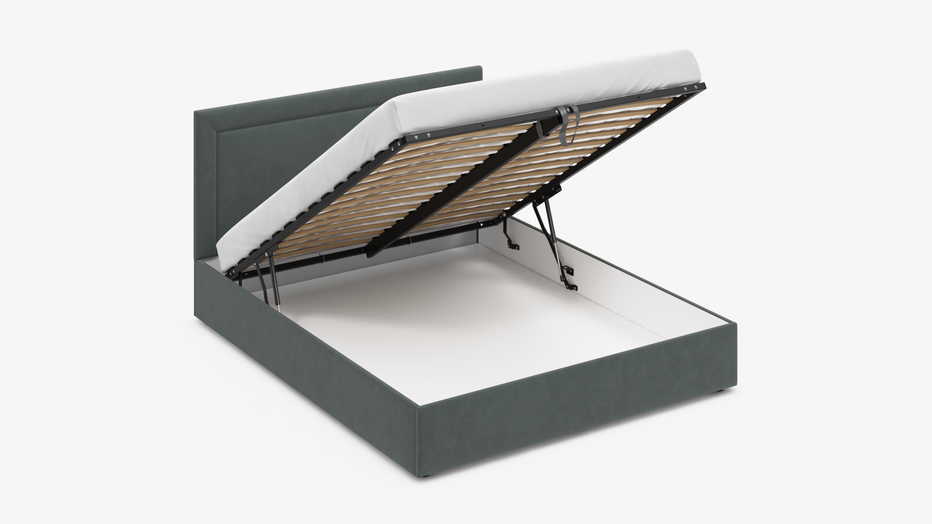 - Скрытая под основанием вместительная емкость без внутренних перегородок позволяет использовать всю площадь подкроватного пространства для хранения вещей.