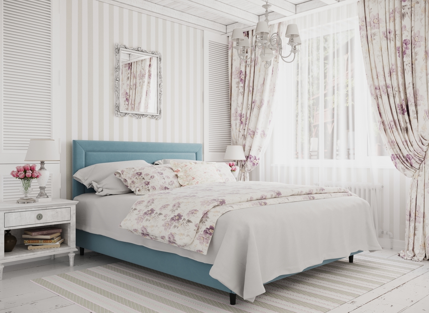 Создать гармоничный интерьер и завершить образ спальни помогут дополнительные аксессуары, например: тумбы, банкетки, подушки.