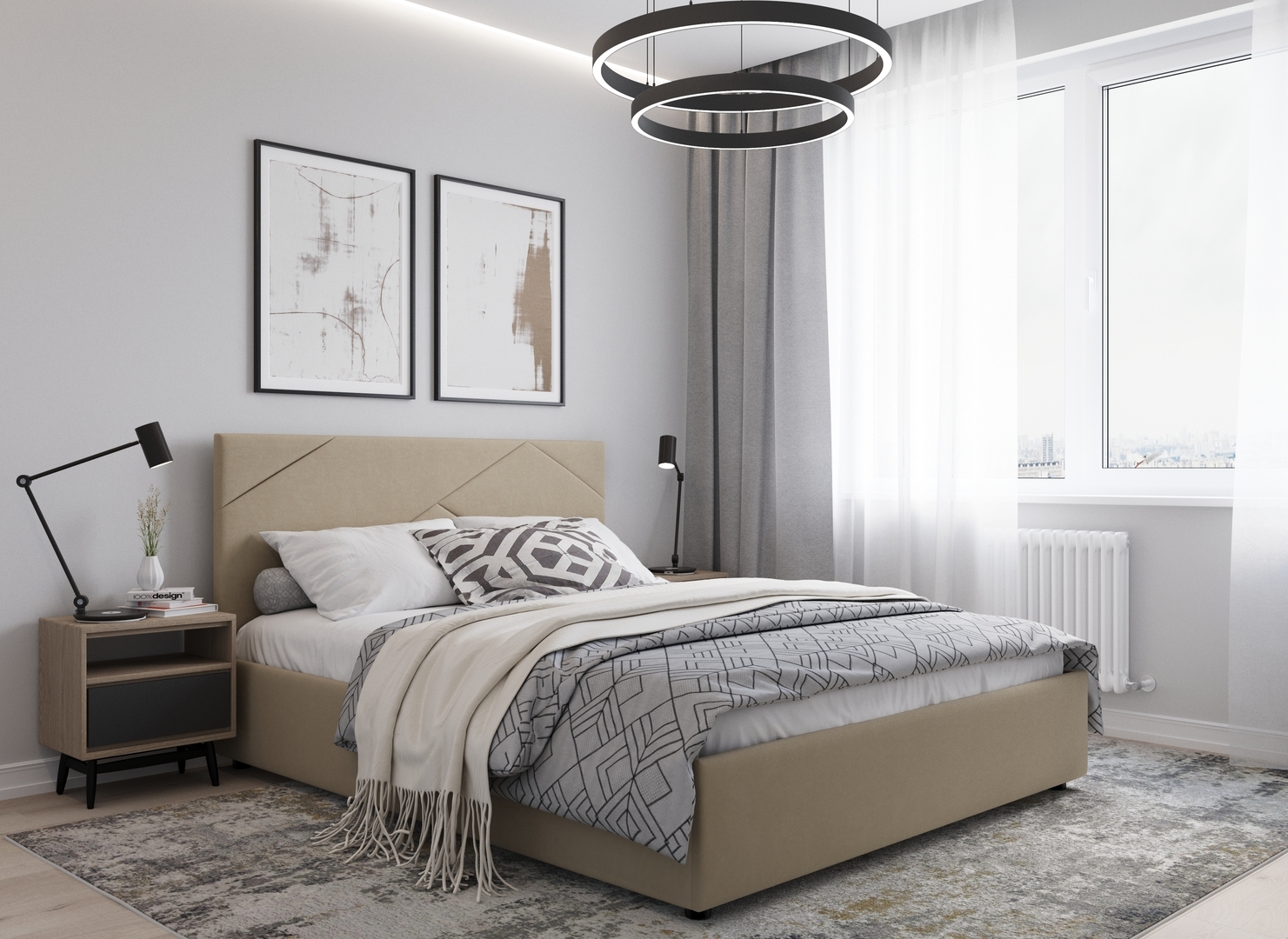 Создать гармоничный интерьер и завершить образ спальни помогут дополнительные аксессуары, например: тумбы, банкетки, подушки.