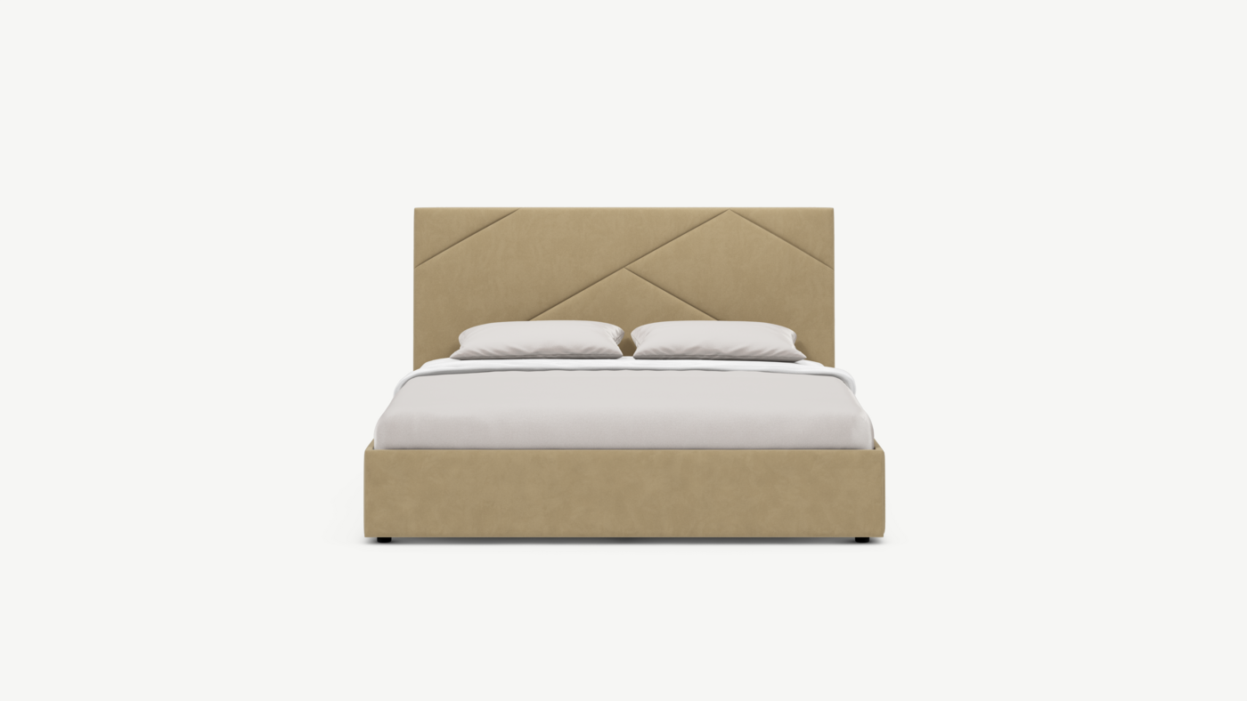Кровать с подъёмным механизмом с выбором опорMOON FAMILY 1257 привлекает внимание оригинальным исполнением: широкие полосы ткани эффектно пересекают периметр изголовья, создавая на нем графический орнамент. Лаконичные формы объемных царг создают единый гармоничный образ и фокусируют внимание на центральном текстурном элементе кровати.