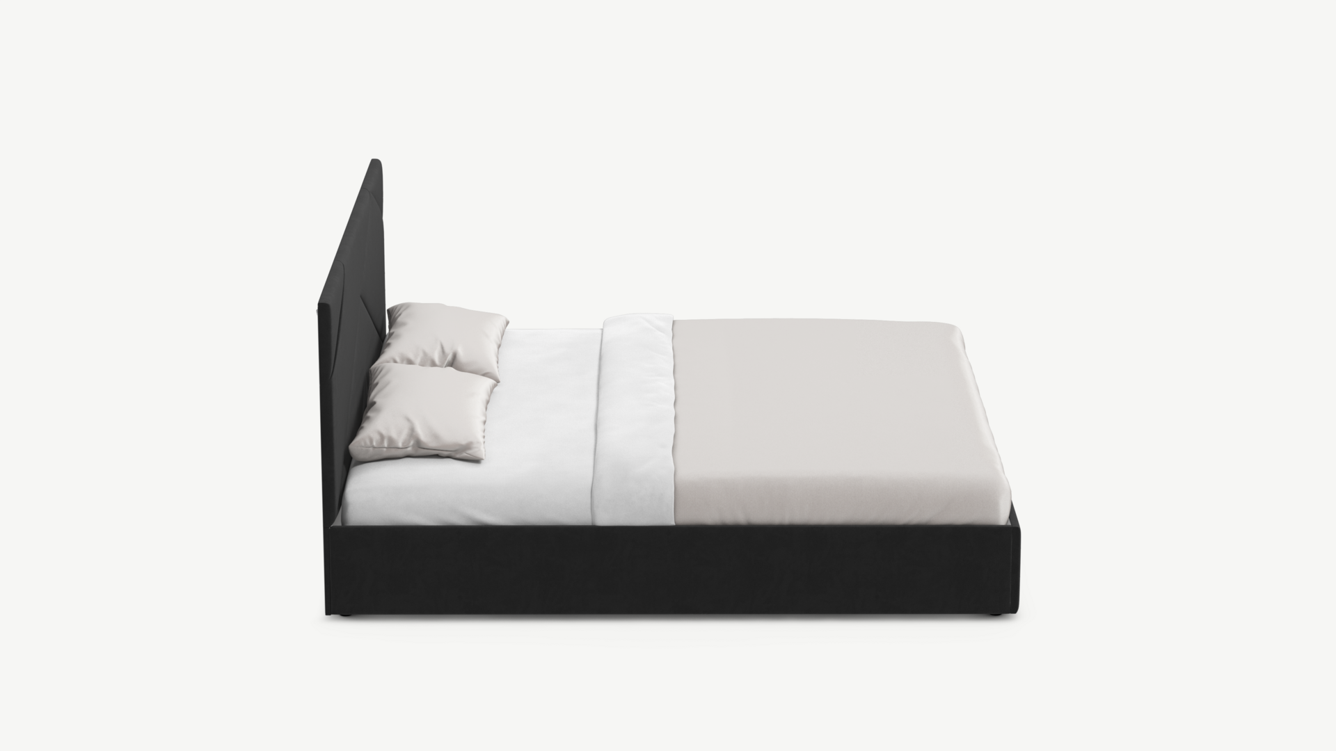 MOON FAMILY 1257 привлекает внимание оригинальным исполнением: широкие полосы ткани эффектно пересекают периметр изголовья, создавая на нем графический орнамент. Лаконичные формы объемных царг создают единый гармоничный образ и фокусируют внимание на центральном текстурном элементе кровати.