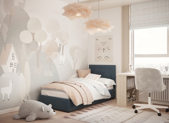 Фактура обивочного материала подбирается дизайнерами с учетом технологических и стилевых особенностей кровати.