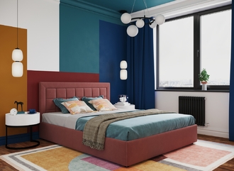 Фактура обивочного материала подбирается дизайнерами с учетом технологических и стилевых особенностей кровати.