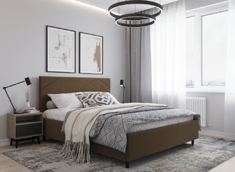 Фактура обивочного материала подбирается дизайнерами с учетом технологических и стилевых особенностей кровати.