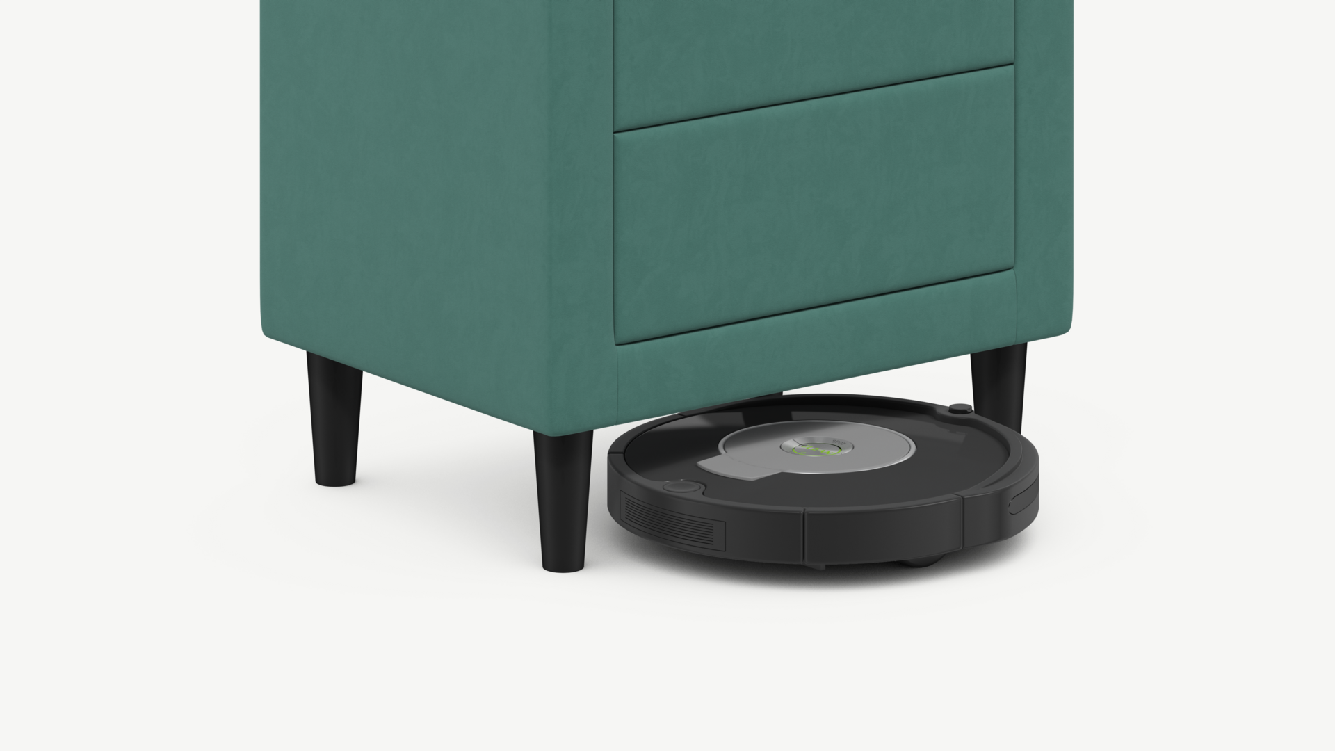 Под тумбой с высокими опорами проходит робот-пылесос и легко проводится влажная уборка, что обеспечивает чистоту и порядок в доме.
