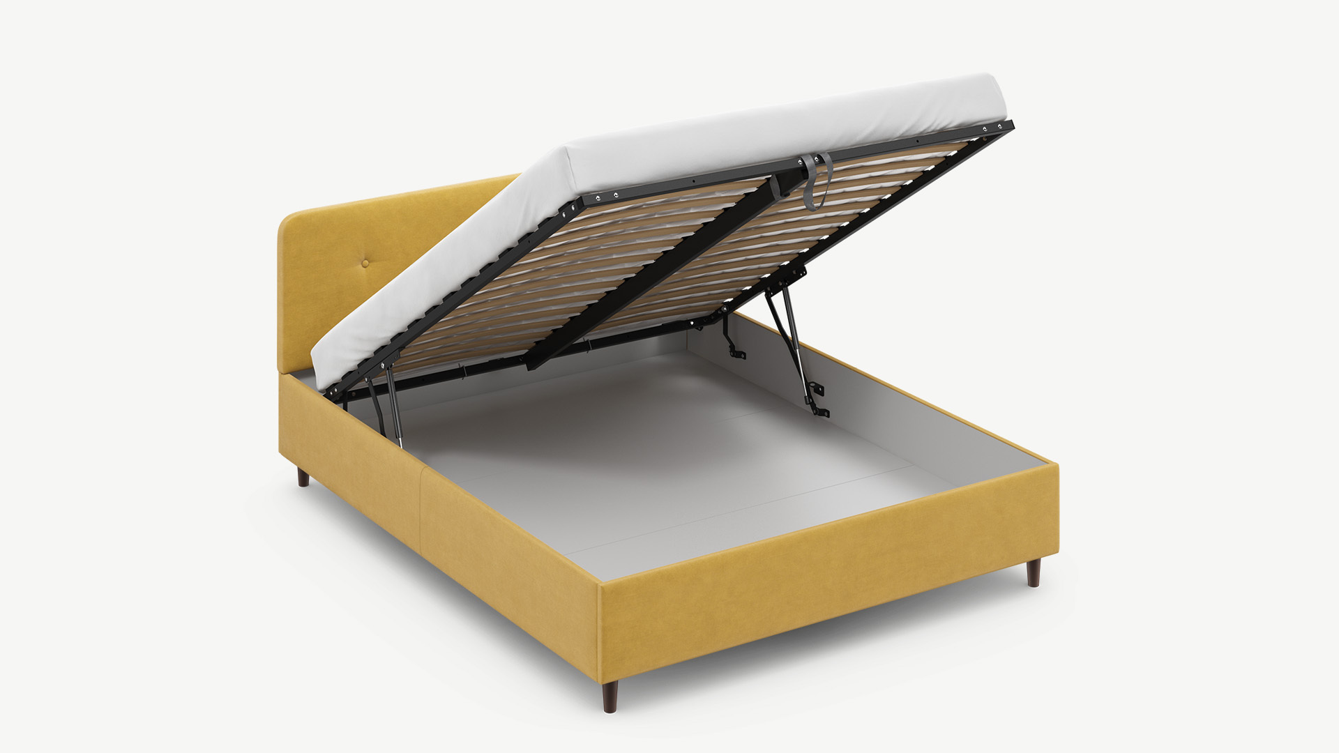 • Скрытая под основанием вместительная емкость без внутренних перегородок позволяет использовать всю площадь подкроватного пространства для хранения вещей.