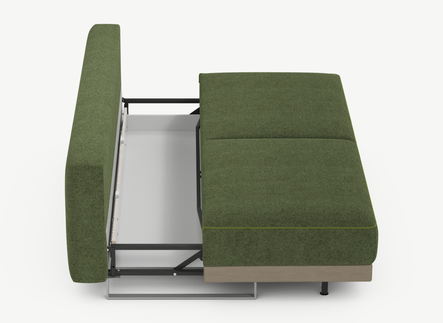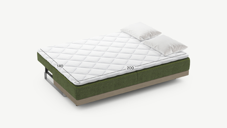 Механизм трансформации «Пантограф» подходит для ежедневного использования. Позволяет легко раскладывать и складывать диван, обеспечивая минимальный контакт дополнительных опор с напольным покрытием. Диван стоит на прямоугольных опорах, в то время как дополнительные остаются скрытыми, появляясь плавно и бесшумно в единственно нужный момент — при трансформации дивана в кровать.