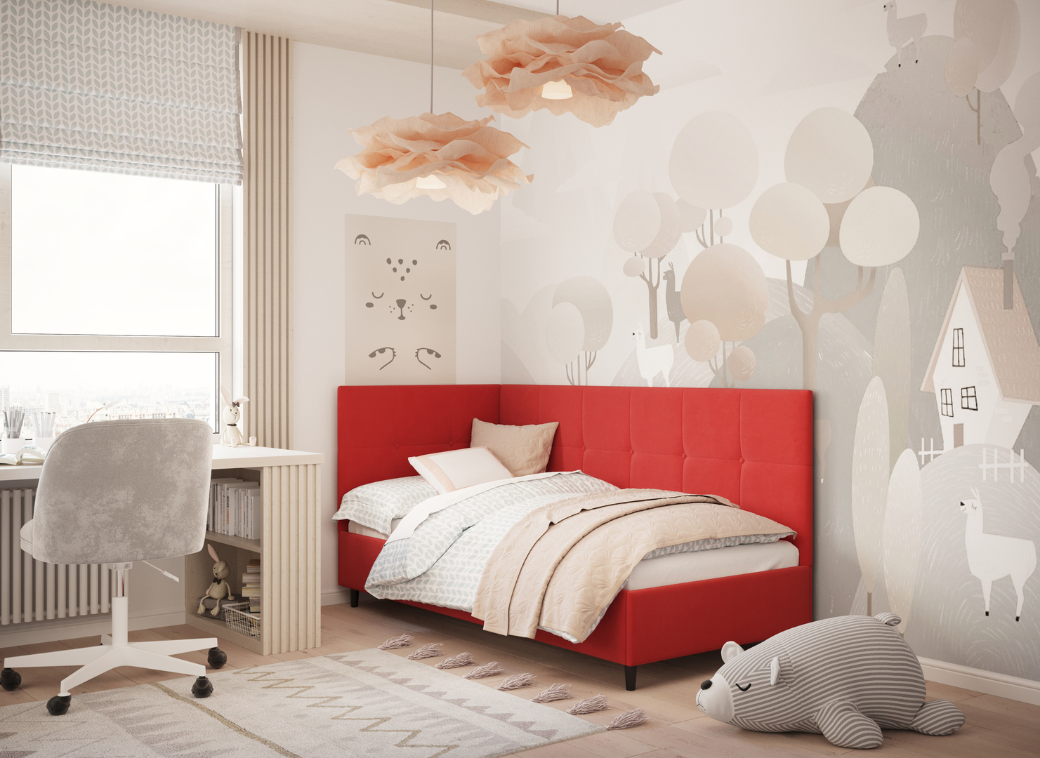 MOON FAMILY 1261 объединяет функциональность и стиль, создавая гармоничное пространство для отдыха и творчества. Кровать доступна в левостороннем и правостороннем исполнении, что позволяет легко адаптировать ее под любые интерьерные особенности.