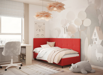 Угловая односпальная кровать MOON FAMILY 1261 с мягкой спинкой и изголовьем создаст в Вашей спальне ощущение уюта. Крупная квадратная стежка привносит в интерьер графических акцентов, а вставка из пуговиц наполняет пространство ощущением домашнего тепла.