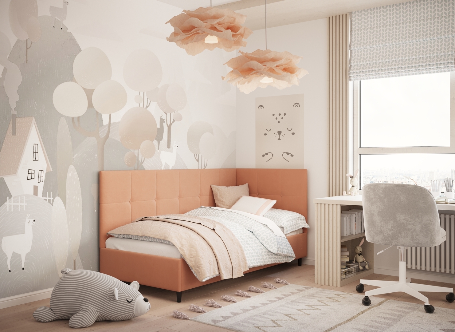 MOON FAMILY 1261 объединяет функциональность и стиль, создавая гармоничное пространство для отдыха и творчества. Кровать доступна в левостороннем и правостороннем исполнении, что позволяет легко адаптировать ее под любые интерьерные особенности.