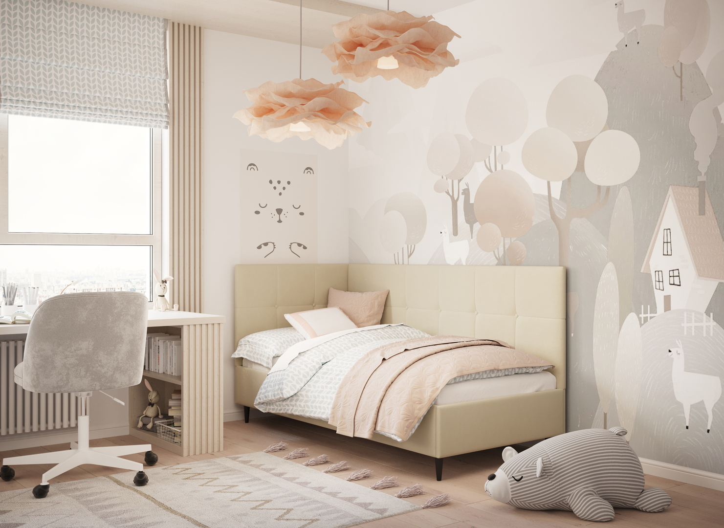 MOON FAMILY 1261 объединяет функциональность и стиль, создавая гармоничное пространство для отдыха и творчества. Кровать доступна в левостороннем и правостороннем исполнении, что позволяет легко адаптировать ее под любые интерьерные особенности.
