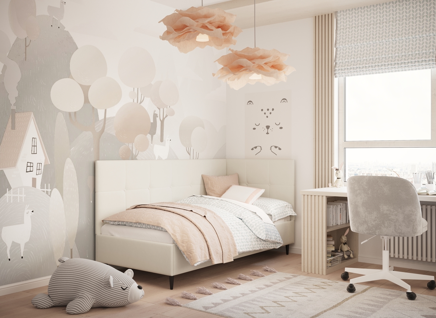 MOON FAMILY 1261 объединяет функциональность и стиль, создавая гармоничное пространство для отдыха и творчества. Кровать доступна в левостороннем и правостороннем исполнении, что позволяет легко адаптировать ее под любые интерьерные особенности.