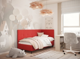 Угловая односпальная кровать MOON FAMILY 1261 с мягкой спинкой и изголовьем создаст в Вашей спальне ощущение уюта. Крупная квадратная стежка привносит в интерьер графических акцентов, а вставка из пуговиц наполняет пространство ощущением домашнего тепла.
