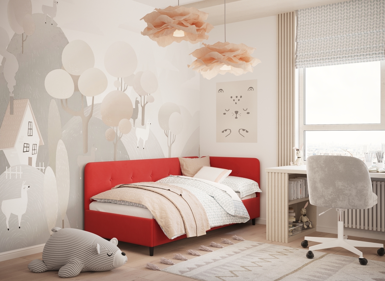 В подростковой комнате эта кровать станет стильным акцентом окружающего интерьера и возьмет на себя роль удобной кушетки для друзей, зашедших в гости.