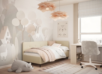 В подростковой комнате эта кровать станет стильным акцентом окружающего интерьера и возьмет на себя роль удобной кушетки для друзей, зашедших в гости.