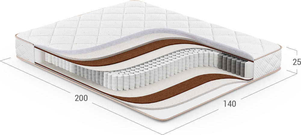 Обеспечивает естественный воздухообмен и сохраняет форму матраса. Выполнен из плотного трикотажа, простеганного на двойном слое объемного волокна. Непрерывная стежка дополняет комфортные ощущения на поверхности спального места и не позволяет наполнителю смещаться в процессе эксплуатации.