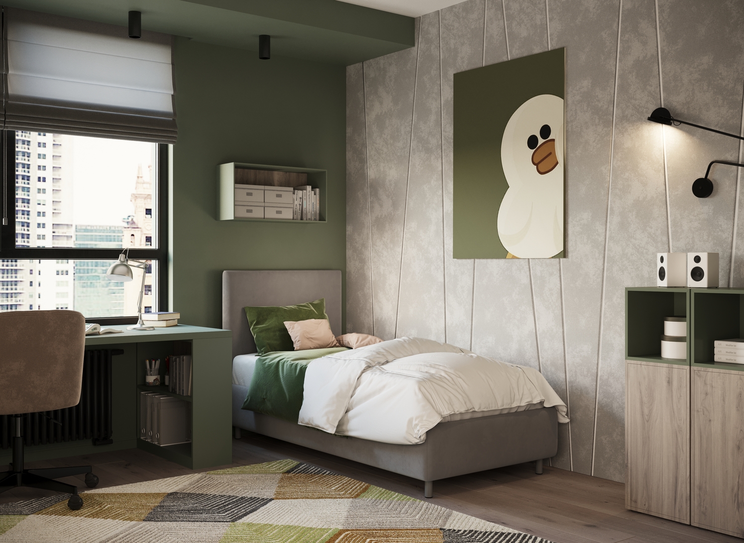 Разнообразие цветовой палитры позволит подобрать желаемый оттенок обивочной ткани. Использование светлых цветов поддержит настроение стиля «Сканди». Приглушенные насыщенные оттенки оформят кровать в стиле «Лофт». Нейтральные оттенки в цвет интерьера обыграют спальню в Современном стиле.