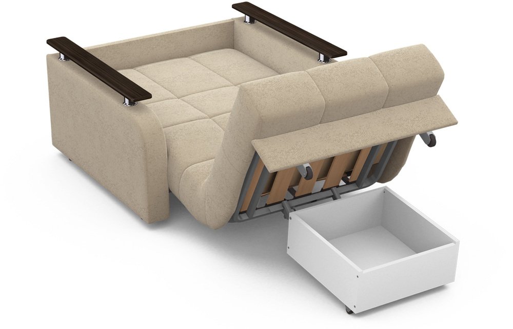 • При минимальных габаритах кресло обладает отличным спальным местом.